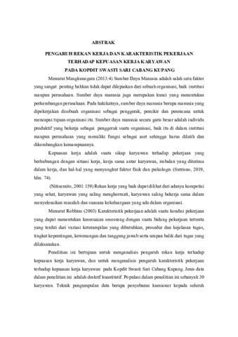JENIA, Priskila (2025) PENGARUH REKAN KERJA DAN KARAKTERISTIK PEKERJAAN TERHADAP KEPUASAN KERJA KARYAWAN PADA KOPDIT SWASTI SARI CABANG KUPANG. Undergraduate thesis, Artha Wacana Christian University.