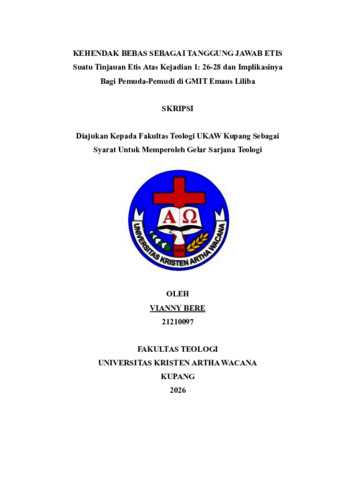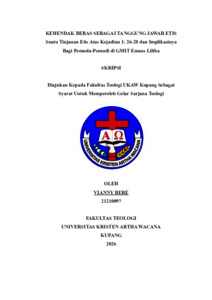 BERE, VIANNY (2026) KEHENDAK BEBAS SEBAGAI TANGGUNG JAWAB ETIS: SUATU TINJAUAN ETIS ATAS KEJADIAN 1: 26-28 DAN IMPLIKASINYA BAGI PEMUDA-PEMUDI DI GMIT EMAUS LILIBA. Undergraduate thesis, Artha Wacana Christian University.