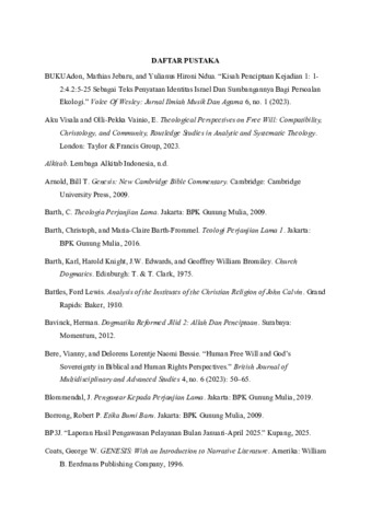 Penelitian ini membahas kehendak bebas sebagai tanggung jawab etis berdasarkan tinjauan etis biblis Kejadian 1:26-28 serta relevansinya bagi pemuda/i di Jemaat GMIT Emaus Liliba. Latar belakang penelitian ini berangkat dari realitas kehidupan pemuda yang berada di tengah perubahan sosial, budaya, dan perkembangan teknologi yang berlangsung secara cepat dan kompleks. Kondisi tersebut kerap membentuk cara pandang terhadap kebebasan secara individualistik, pragmatis, dan terlepas dari dimensi tanggung jawab etis serta relasi iman. Situasi ini menuntut suatu kajian teologis yang mampu menempatkan pemahaman tentang kehendak bebas dalam kerangka iman Kristen yang berakar pada identitas manusia sebagai gambar dan rupa Allah (imago Dei). Tujuan penelitian ini adalah untuk mengkaji konteks historis dan motivasi teologis Kejadian 1:26-28, mengidentifikasi nilai-nilai etis yang terkandung di dalam teks tersebut, serta merumuskan relevansinya bagi kehidupan pemuda/i di Jemaat GMIT Emaus Liliba. Metode penelitian yang digunakan adalah metode kualitatif dengan pendekatan deskriptif-analitis, melalui studi kepustakaan terhadap teks Alkitab dan literatur teologis yang relevan, serta refleksi kontekstual terhadap dinamika kehidupan pemuda dalam lingkungan gereja. Hasil penelitian menunjukkan bahwa Kejadian 1:26-28 lahir dalam konteks krisis identitas umat Israel dan berfungsi sebagai pernyataan teologis yang menegaskan kembali martabat manusia sebagai imago Dei. Kehendak bebas dipahami sebagai anugerah Allah yang melekat pada identitas manusia, namun tidak bersifat otonom mutlak, melainkan selalu terikat pada tanggung jawab etis dalam relasi dengan Allah, sesama, dan seluruh ciptaan. Nilai-nilai etis yang terkandung dalam teks ini meliputi kekudusan hidup, tanggung jawab moral, pengelolaan kuasa secara etis, serta partisipasi manusia dalam mandat budaya Allah. Relevansi etis Kejadian 1:26-28 bagi pemuda/i GMIT Emaus Liliba terletak pada panggilan untuk menghidupi kebebasan secara bertanggung jawab di tengah tantangan kehidupan modern. Pemuda dipanggil untuk memahami kebebasan bukan sekadar sebagai hak pribadi, melainkan sebagai sarana menghadirkan kemuliaan Allah melalui kehidupan yang berintegritas, relasi yang membangun, serta keterlibatan aktif dalam pelayanan gereja dan tanggung jawab sosial sebagai wujud iman Kristen yang hidup dan nyata.