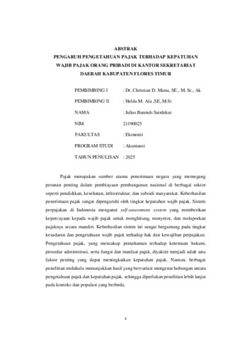 SAIRDEKUT, Julius Barends (2025) PENGARUH PENGETAHUAN PAJAK TERHADAP KEPATUHAN WAJIB PAJAK ORANG PRIBADI DI KANTOR SEKRETARIAT DAERAH KABUPATEN FLORES TIMUR. Undergraduate thesis, Artha Wacana Christian University.